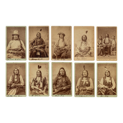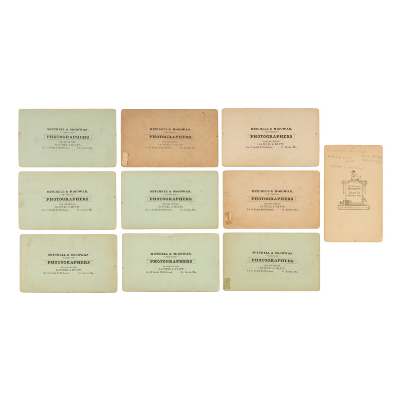 10 CDVs on cardstock mounts with verso imprint of D.S. Mitchell, Cheyenne, Wyoming, or Mitchell & McGowan, St. Louis, Missouri. Most subjects are identified in period ink on mount verso.