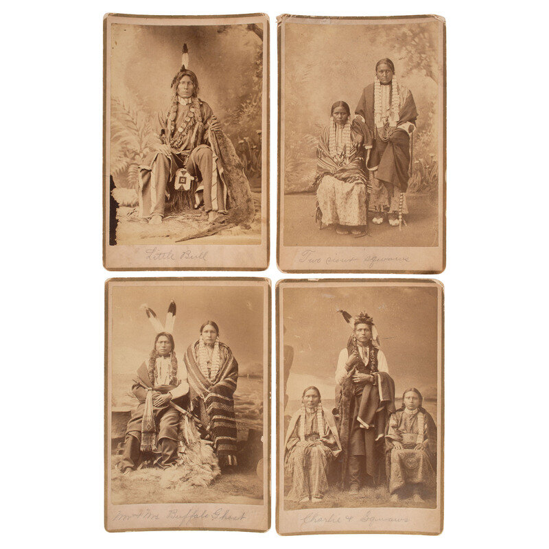four cabinet photographs on cardstock mounts, unmarked but attributed to R.L. Kelly, Pierre, South Dakota, ca 1880s. Subjects identified in pencil on mount recto.