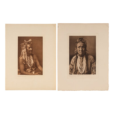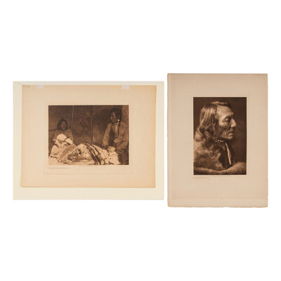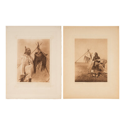 7 volume photogravures on Japon vellum: Fat Horse, With Insignia Of A Blackfoot Soldier. -- In A Blackfoot Camp. -- The Grizzly-Bear, Piegan. -- Mountain Chief, Piegan. -- Running Owl, Piegan. -- Red Plume, Piegan. -- A Beaver Bundle, Blackfoot.