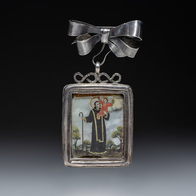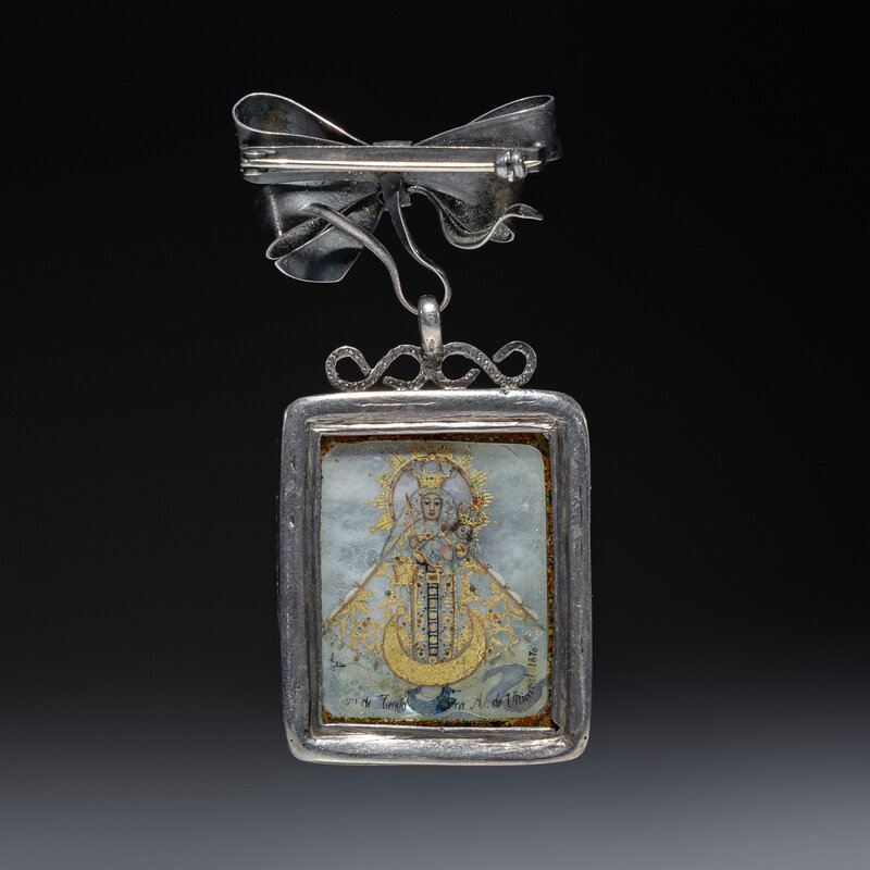 Spanish Colonial Retablo Pin, Relicario