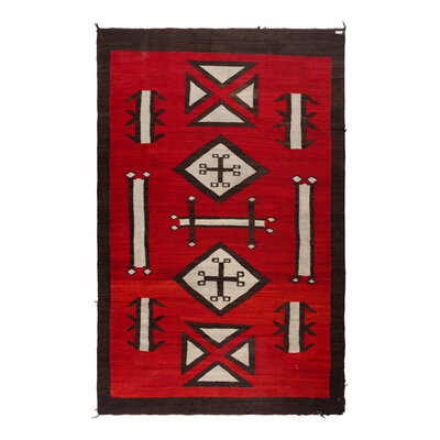 handspun wool woven with bold designs in colors of deep red, dark brown, and cream