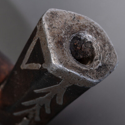 Monumental Ojibwe Calumet Pipe, with Fine Lead Inlay Burl Bowl