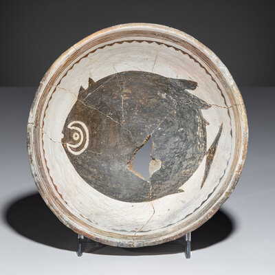 Ancestral Pueblo, Mimbres Classic Black-on-White Pottery Bowl, with Fish