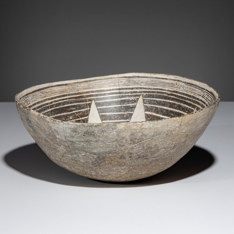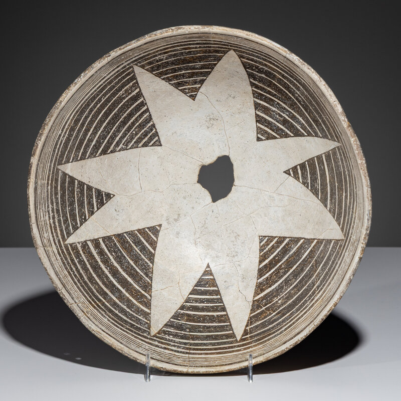 Ancestral Pueblo, Mimbres Classic Black-on-White Pottery Bowl, with Star or Blossom Design