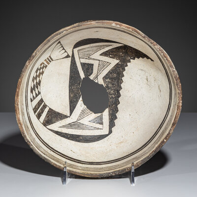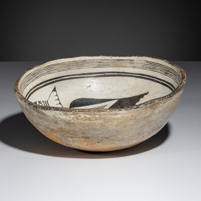 Ancestral Pueblo, Mimbres Black-on-White Pottery Bowl, Transformational Fish