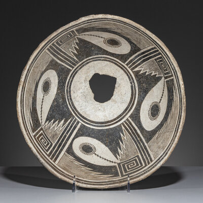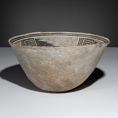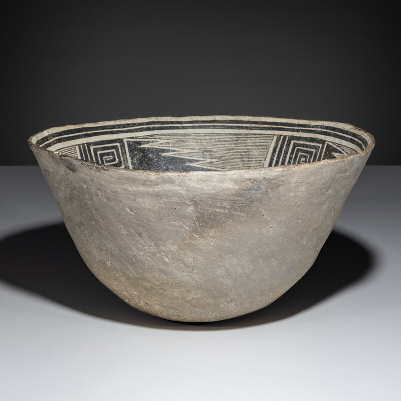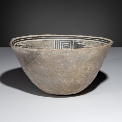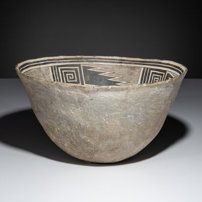 Ancestral Pueblo, Mimbres Classic Black-on-White Pottery Bowl