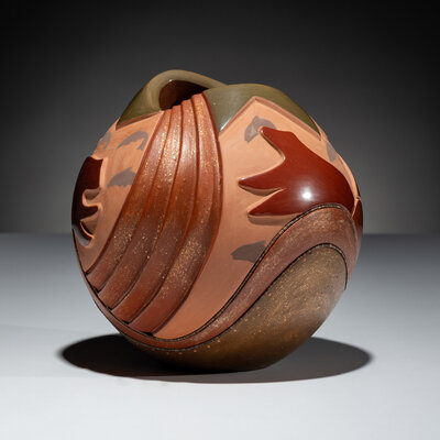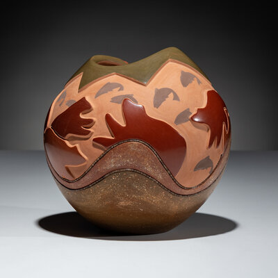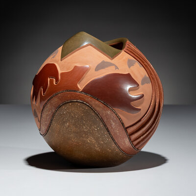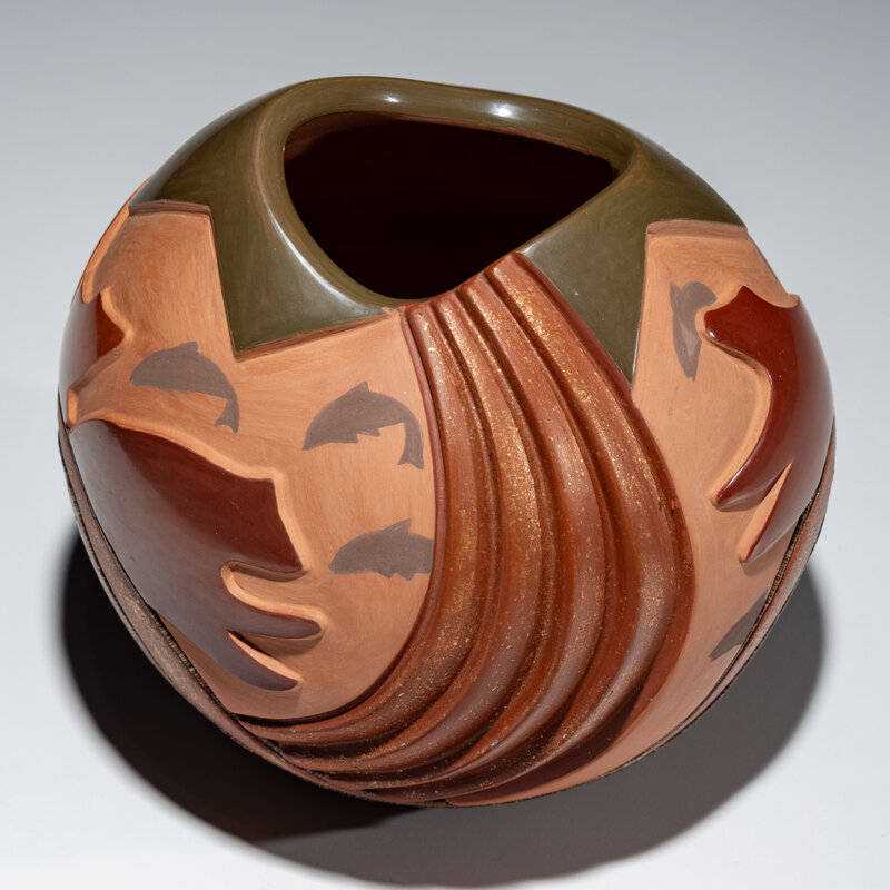 Polychrome Pottery Jar, with Micaceous Ribs and Heishi