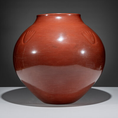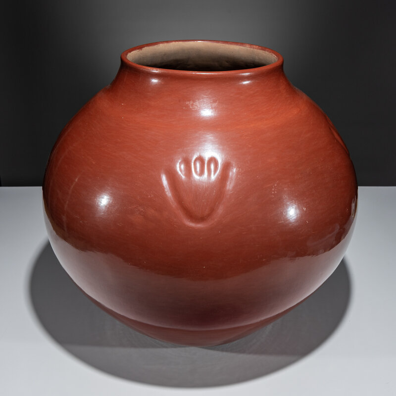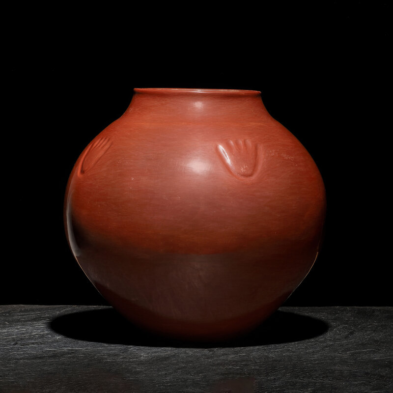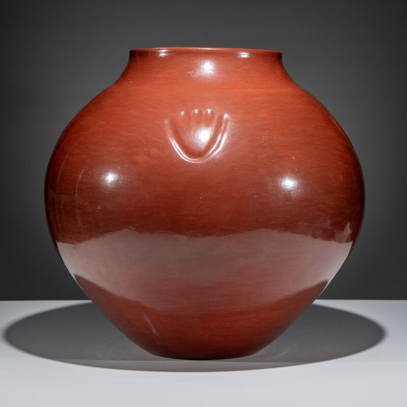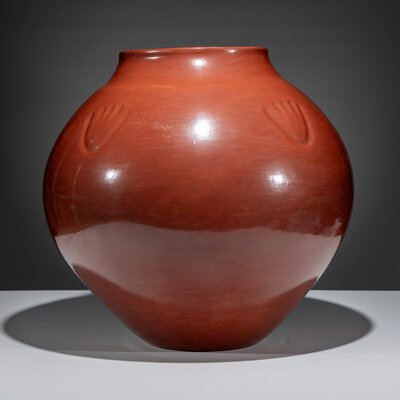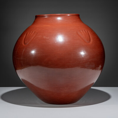 Monumental Redware Pottery Jar, with Bear Paw
