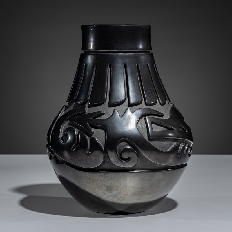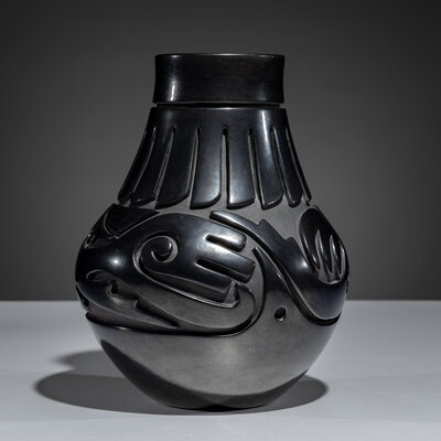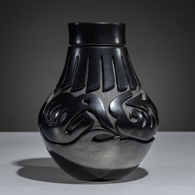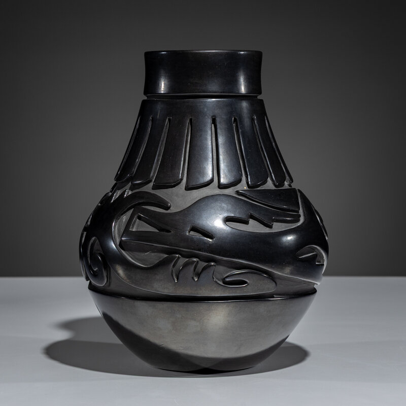 Carved Blackware Pottery Vase, Stylized Avanyu
