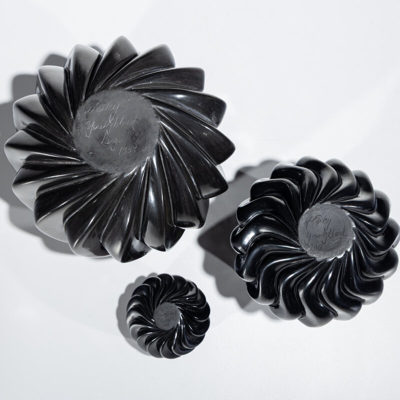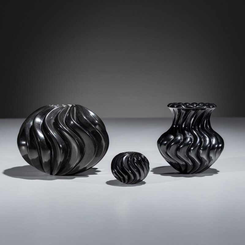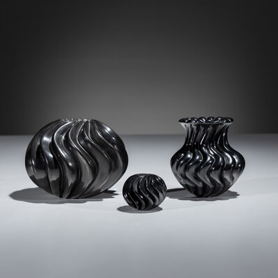 a vase with fluted rim and 16 ribs; signed and dated 2018, height 3-3/4 inches x diameter 3-1/2 inches