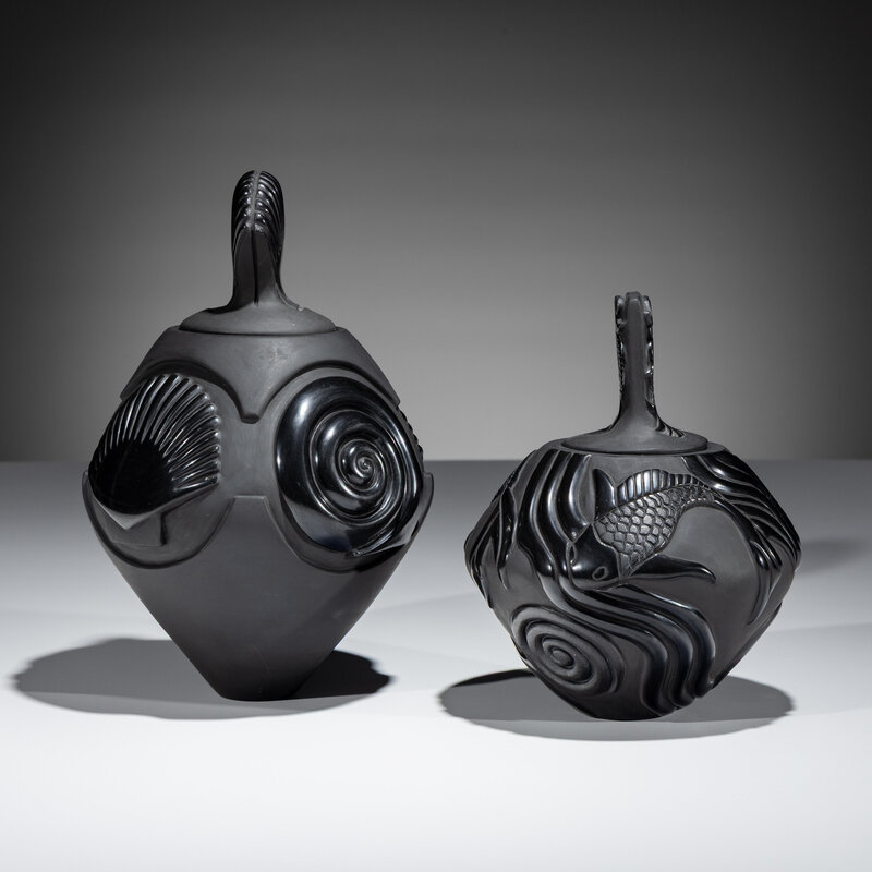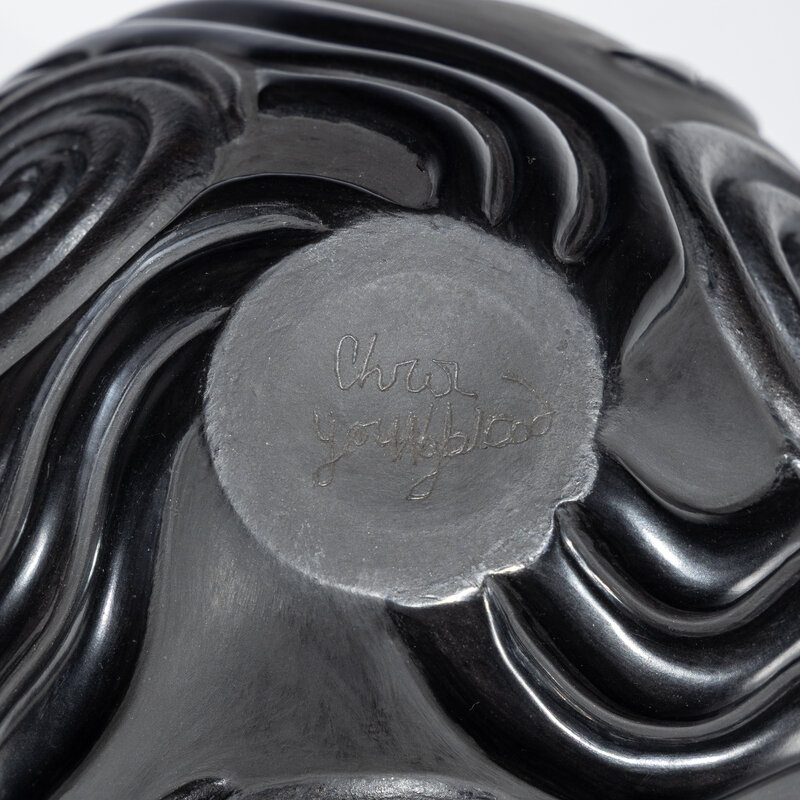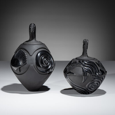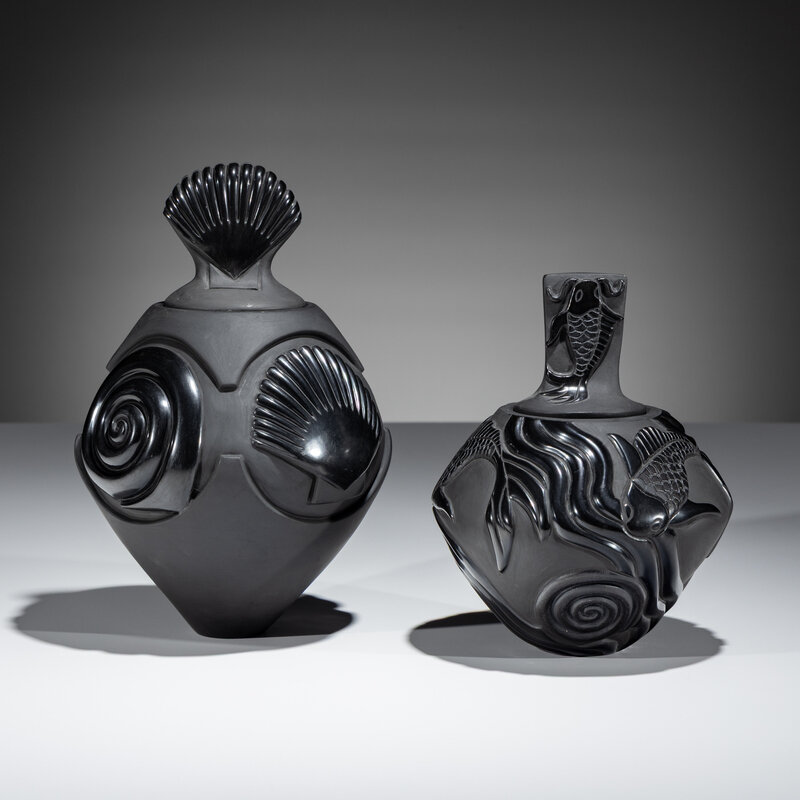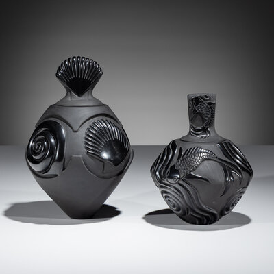 a jar with shell imagery by Nancy Youngblood; signed and dated 2006 on base, height 10 inches x diameter 6-1/2 inches