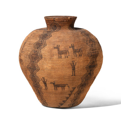 Monumental Apache Basketry Figural Olla