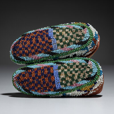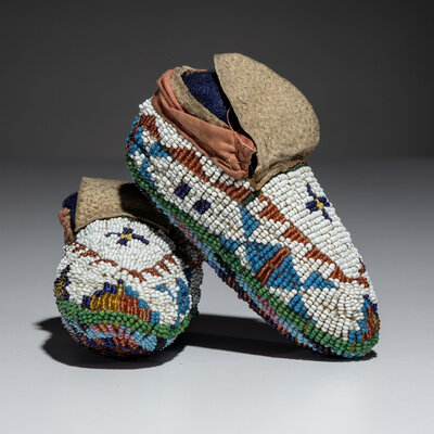 Sioux Child's Fully Beaded Hide Moccasins