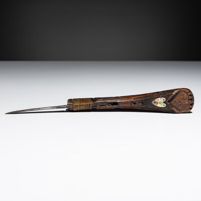 Maliseet / Mi'kmaq Crooked Knife, with Mother-of-Pearl Inlay