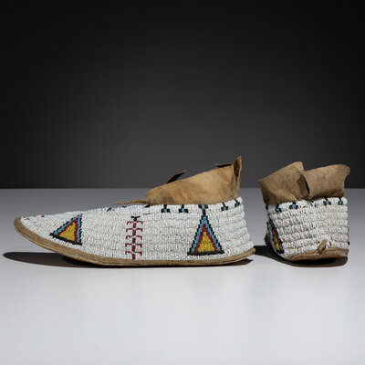 Cheyenne Beaded Hide Moccasins, with Thunderbirds