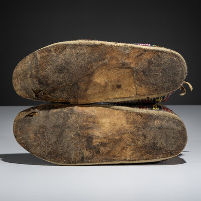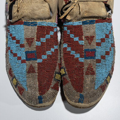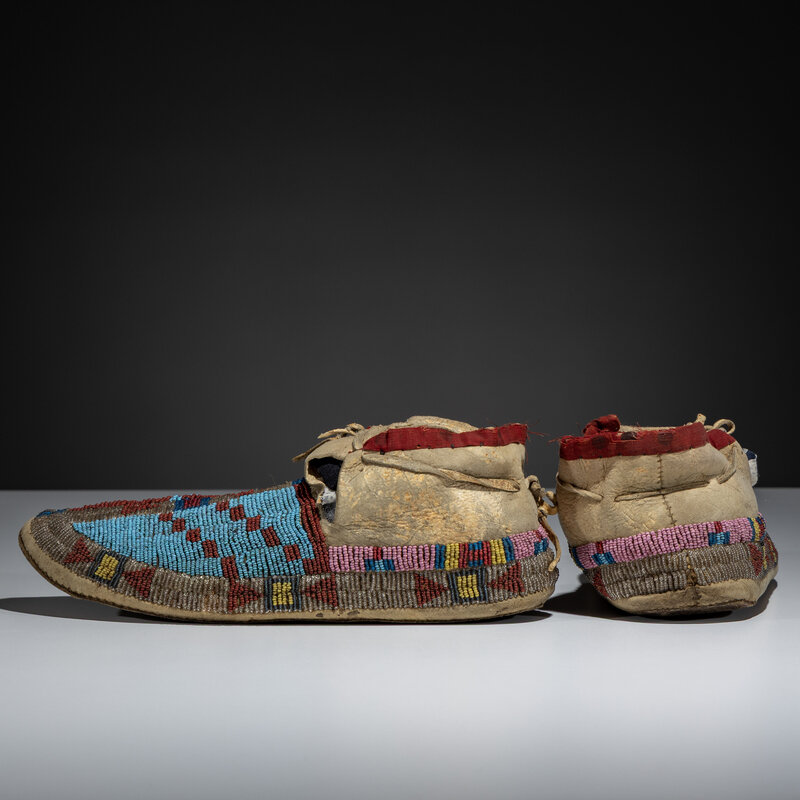 Northern Cheyenne / Arapaho Beaded Moccasins, with Recycled Buffalo Parfleche Soles