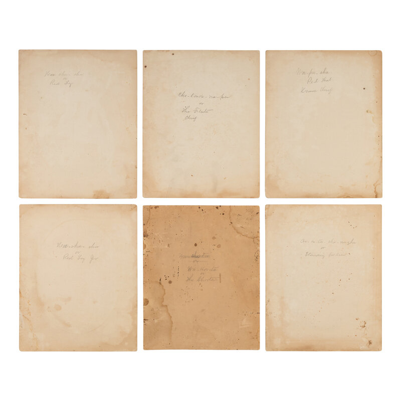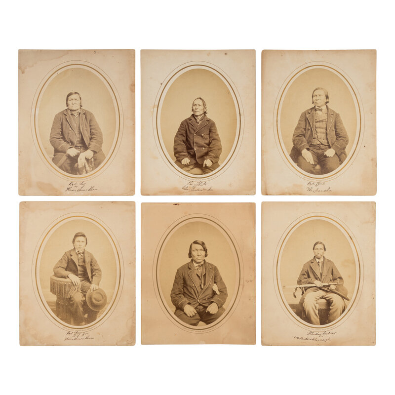 six 7 1/4 x 5 1/4 in. albumen photographs on 14 x 10 3/4 in. cream-colored mounts, unmarked but originally taken in Washington, DC, by Antonio Zeno Shindler. The sitters are misidentified in ink below each portrait.