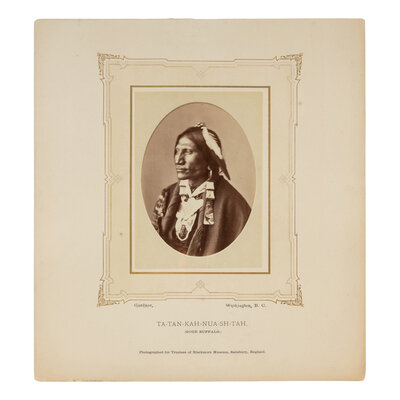 5 1/4 x 3 3/4 in. albumen photograph, tipped on ornately scrolled Blackmore Museum mount, 11 x 10 in. Lower margin of mount with credit to A. Gardner, Washington, DC, and imprint, "Photographed by Trustees of Blackmore Museum, Salisbury, England."