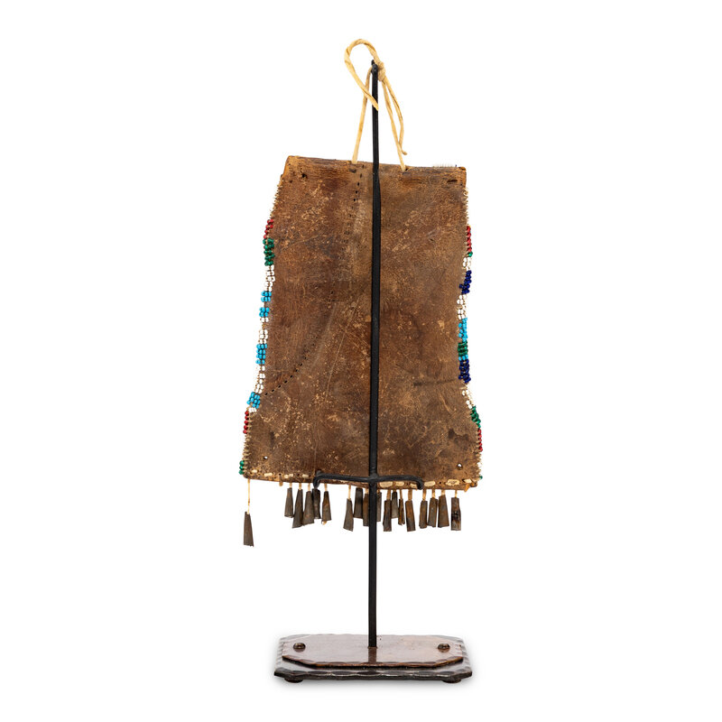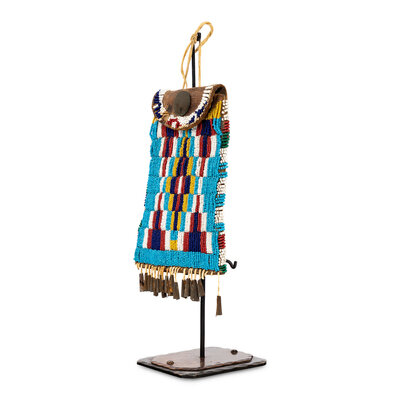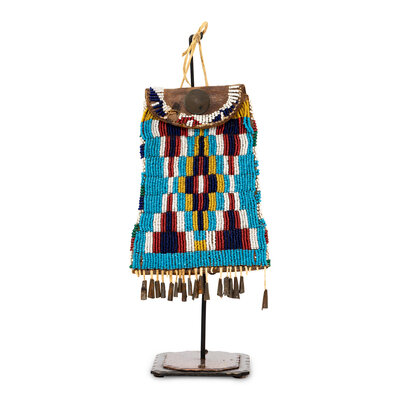 colorfully beaded in colors of sky blue, navy blue, white, red white-heart, yellow, and translucent green