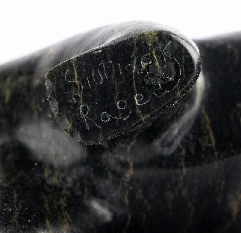 a polar bear signed Ragee, height 4 inches x length 9-1/2 inches x width 3-1/2 inches