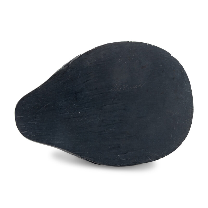 a larger carving featuring a raven perched atop a bear; signed on base ED RUSS; height 7-1/2 inches x length 7 inches x width 5 inches