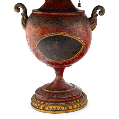 A Pair of Regency Painted Tôle Urns Mounted as Lamps