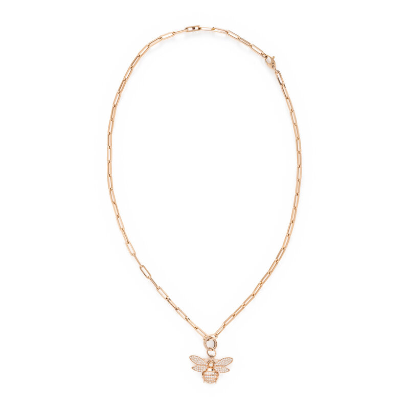 ROSE GOLD AND DIAMOND BEE PENDANT NECKLACE