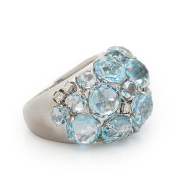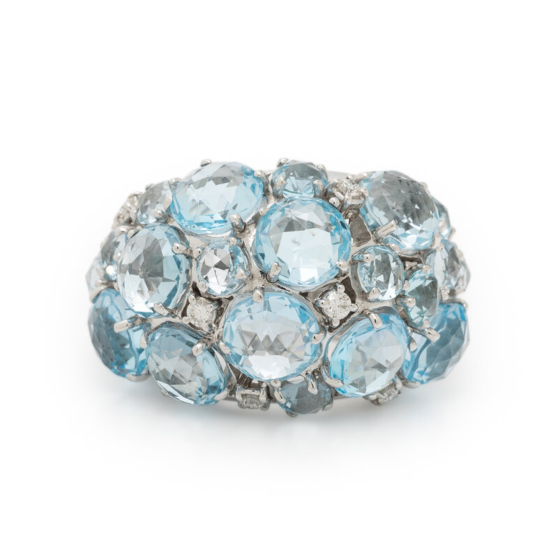 A & FURST, WHITE GOLD, DIAMOND, AND BLUE TOPAZ RING