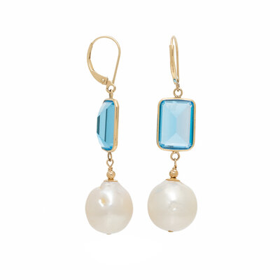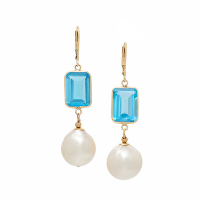 CULTURED PEARL AND BLUE TOPAZ EARRINGS