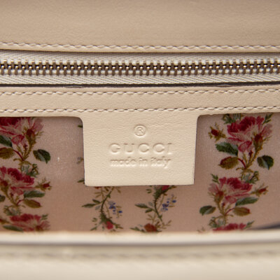 Details: Aged gold-tone hardware, push-lock closure to flap, floral-printed satin lining, two interior compartments, two interior sidewall slip pockets, one interior sidewall zipper pocket
