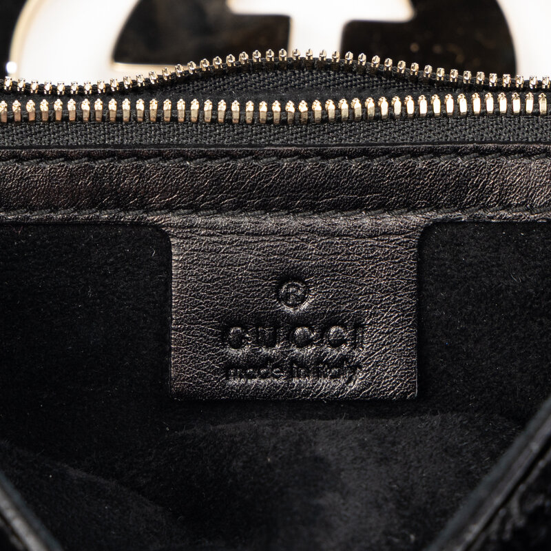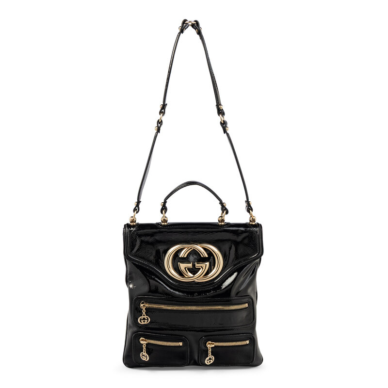GUCCI, BLACK PATENT BRITT TOTE BAG