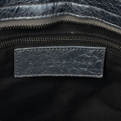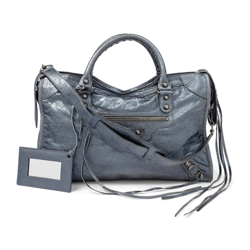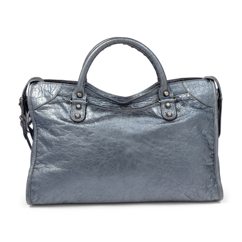 BALENCIAGA, METALLIC STEEL BLUE MEDIUM CITY BAG