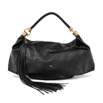 CHLOÉ, 'FOULARD' BLACK LEATHER HOBO BAG
