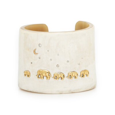 SHOMPOLE COLLECTION, RESIN, DIAMOND, AND YELLOW GOLD ELEPHANT CUFF BRACELET