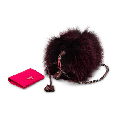 PRADA, PURPLE FOX FUR BAG & PINK WALLET