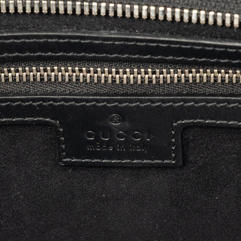 Details: Silver-tone hardware, zipper closure, black microfiber lining,
