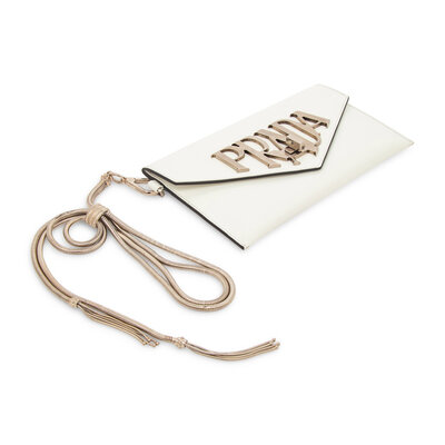 PRADA, WHITE LEATHER WRISTLET CLUTCH