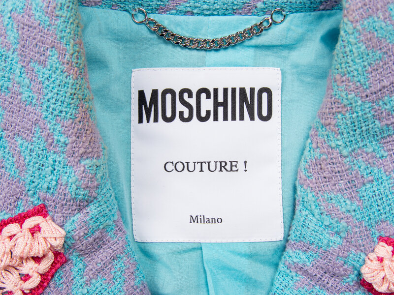MOSCHINO, BOUCLÉ TWEED CROP MOTO JACKET