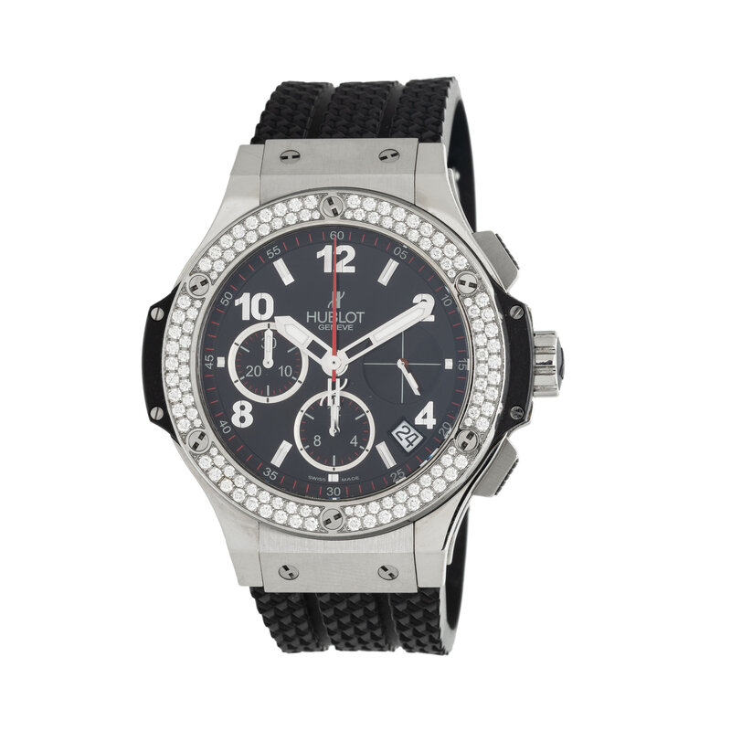 HUBLOT, 'BIG BANG' STAINLESS STEEL CHRONOGRAPH WATCH WITH DATE AND DIAMOND BEZEL