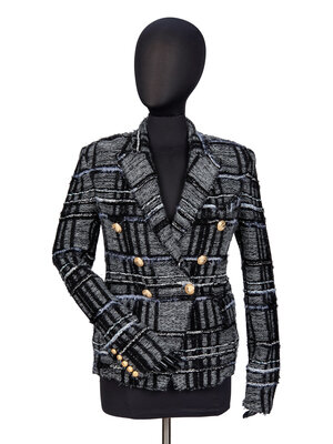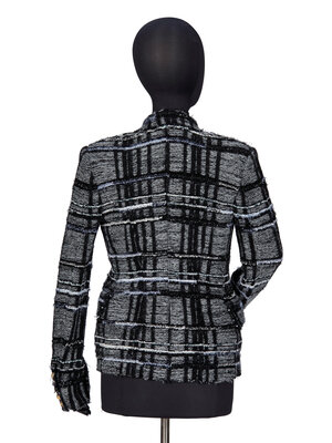 BALMAIN, PLAID KNIT TWEED BLAZER