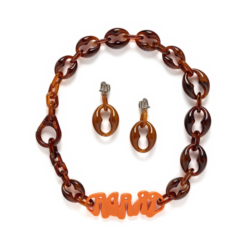 PRADA, NECKLACE & EAR CLIPS SET, 2019