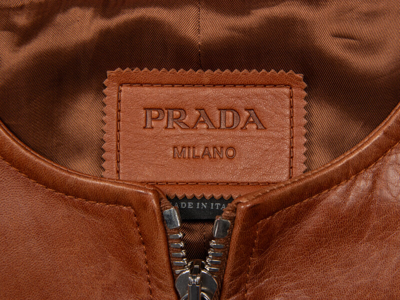 PRADA, FEATHER-TRIM LEATHER JACKET