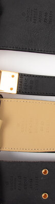 Reversible GG Marmont belt in black leather with a GG monogram coated canvas reverse. Aged gold-tone hardware.
