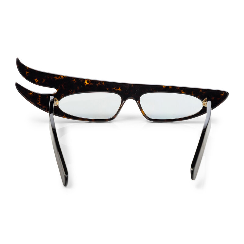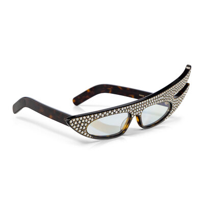 "Hollywood Forever" rhinestoned cat eye/flame sunglasses in a tortoiseshell-effect acetate.