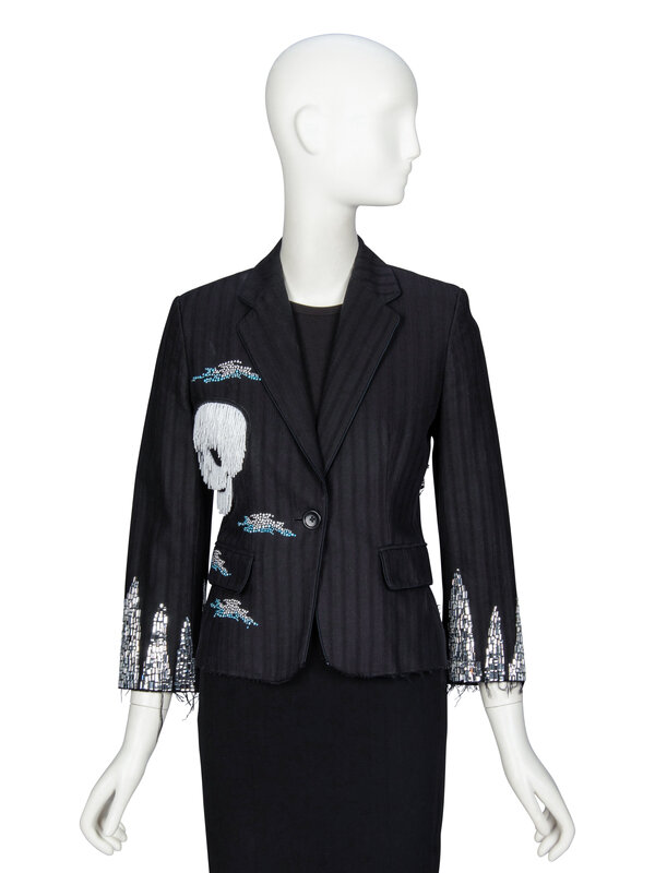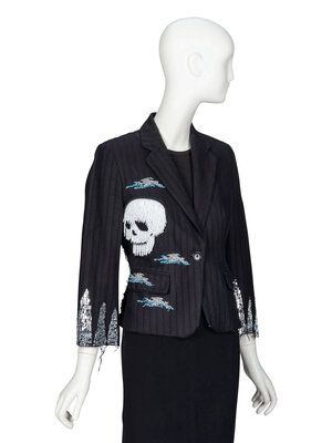 LIBERTINE, EMBELLISHED DISTRESSED SKULL BLAZER