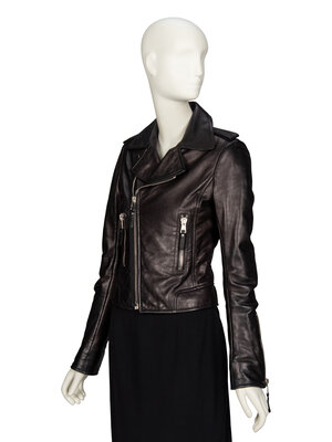 BALENCIAGA, BLACK LEATHER MOTO JACKET