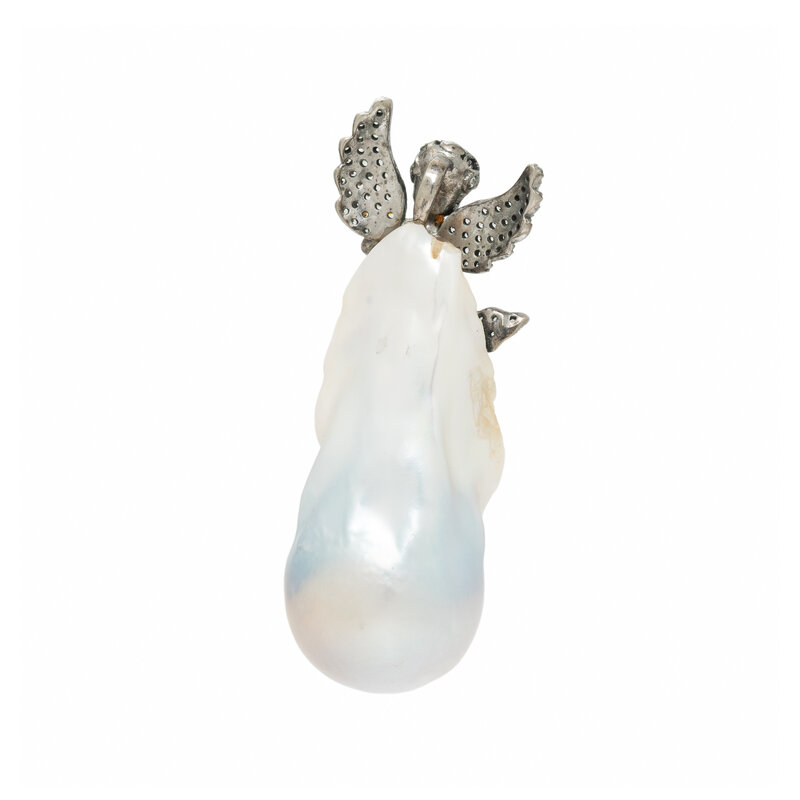 BAROQUE CULTURED PEARL AND PINK CRYSTAL ANGEL PENDANT