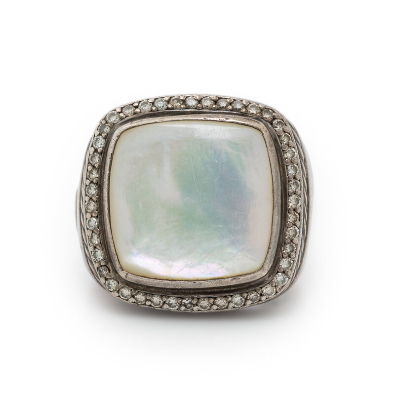 DAVID YURMAN, SILVER, MOTHER-OF-PEARL, AND DIAMOND RING