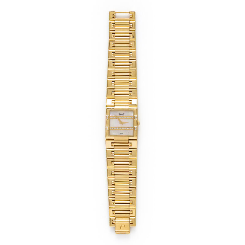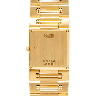 Stamps: Case: PIAGET 80327K81 504949 (Swiss hallmark). Clasp: PIAGET 750.