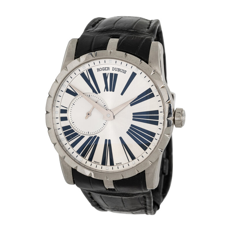 Bracelet/Strap: Roger Dubuis black leather with deployant clasp